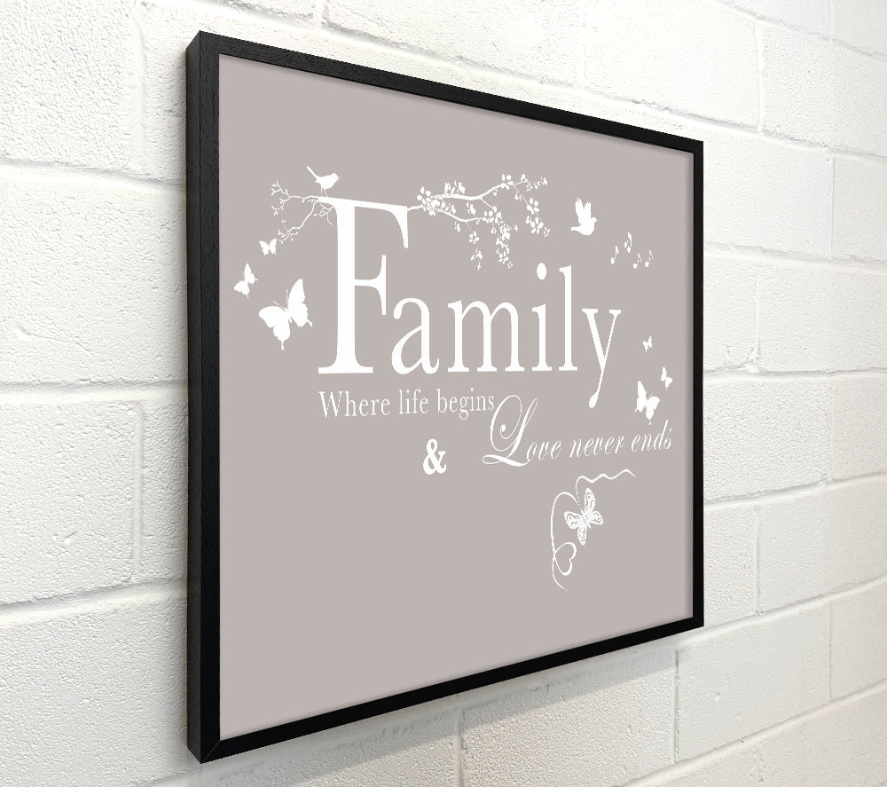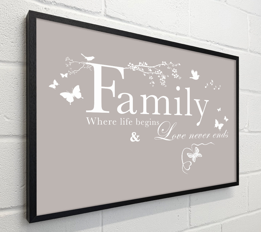 Family Quote Family Where Life Begins Beige
