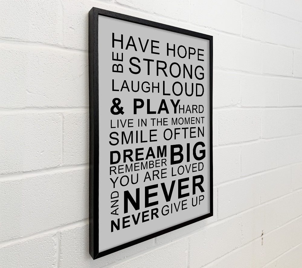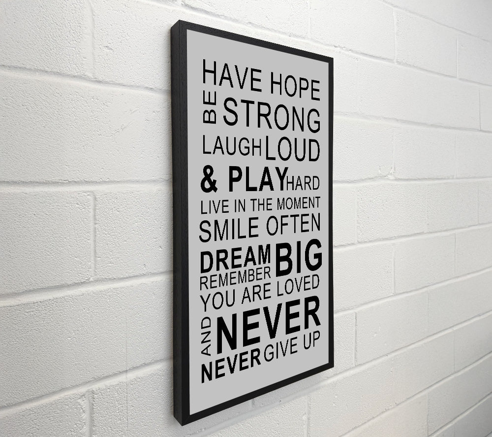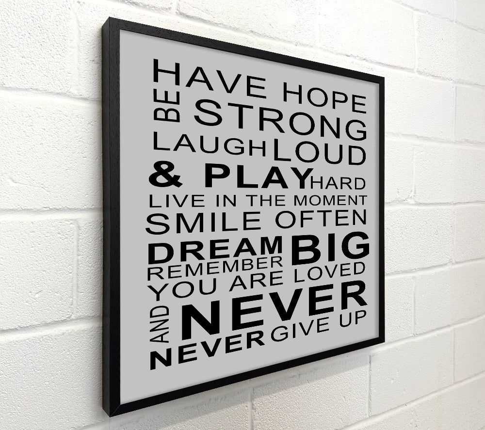 Family Quote Have Hope Be Strong Laugh Loud Grey