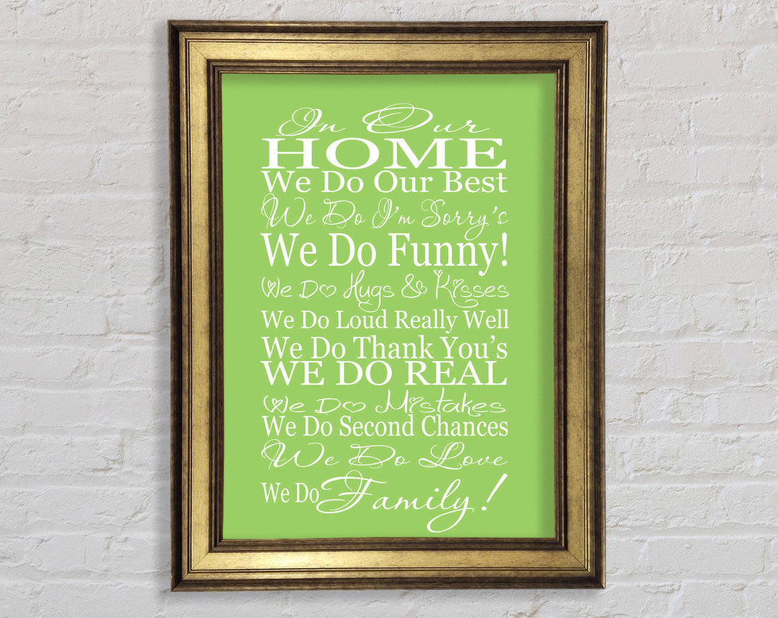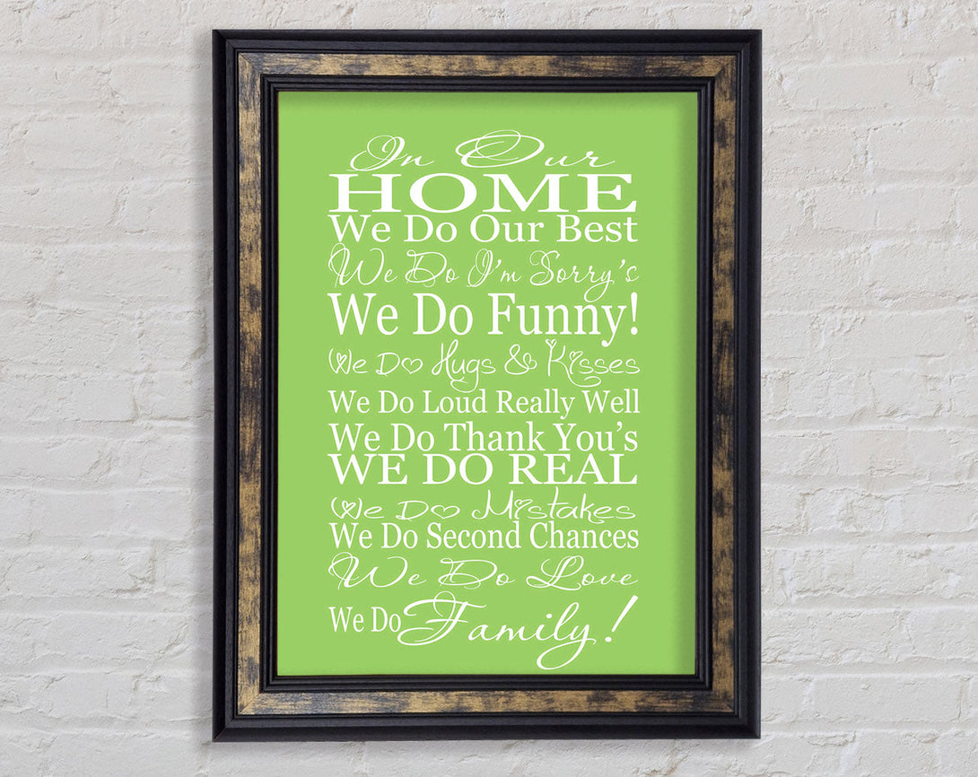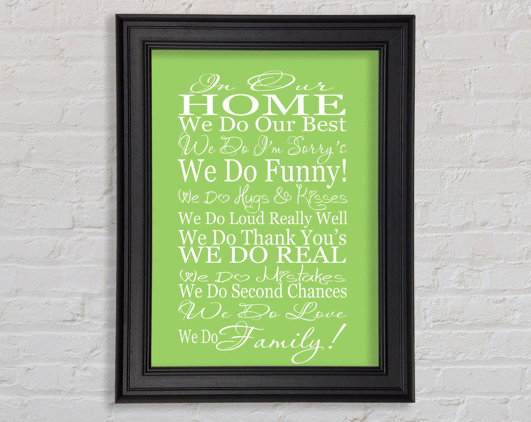 Family Quote In Our Home We Do Family Lime Green Framed Print