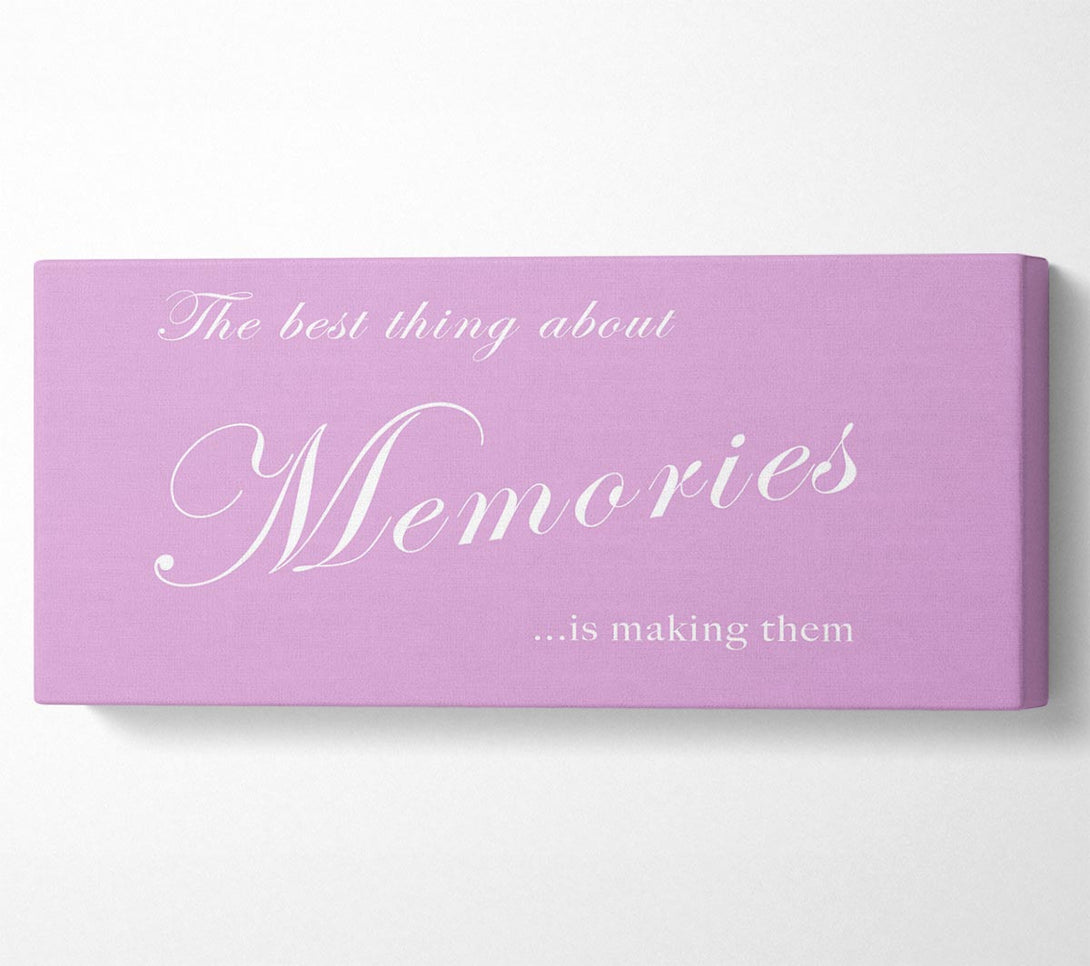 Family Quote The Best Thing About Memories Pink canvas, printed on coated polyester canvas. Mounted on to a 44mm box frame, ready to hang.
