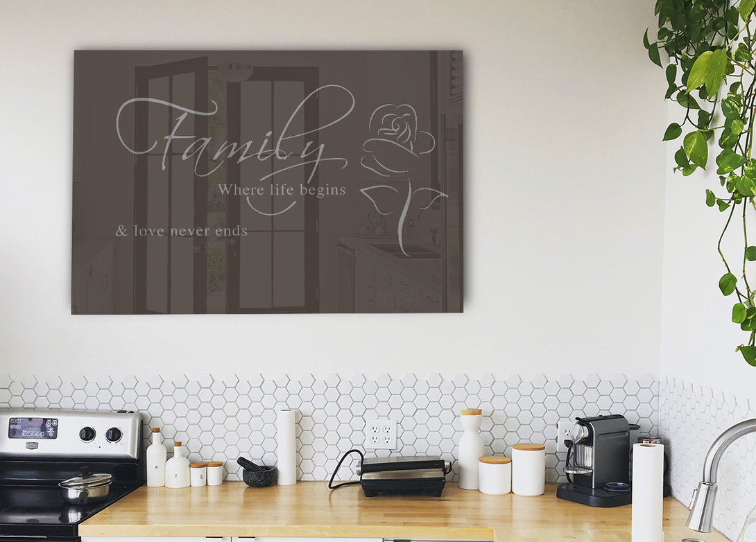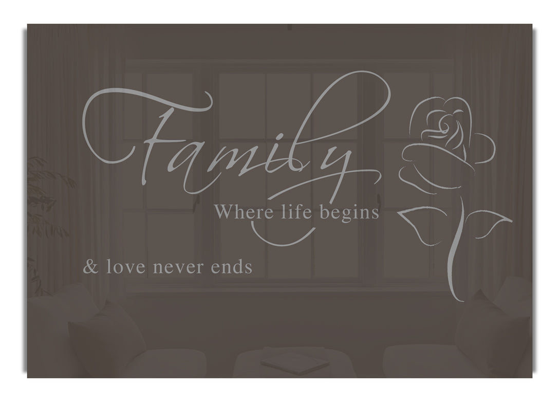 Family Where Life Begins 1 Chocolate acrylic print, UV printed onto 5mm thick acrylic glass. Comes with everything you need to hang on your wall.