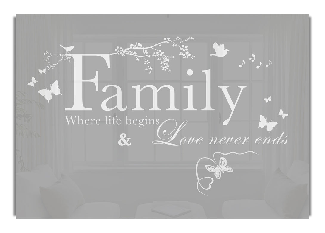 Family Where Life Begins Grey White acrylic print, UV printed onto 5mm thick acrylic glass. Comes with everything you need to hang on your wall.