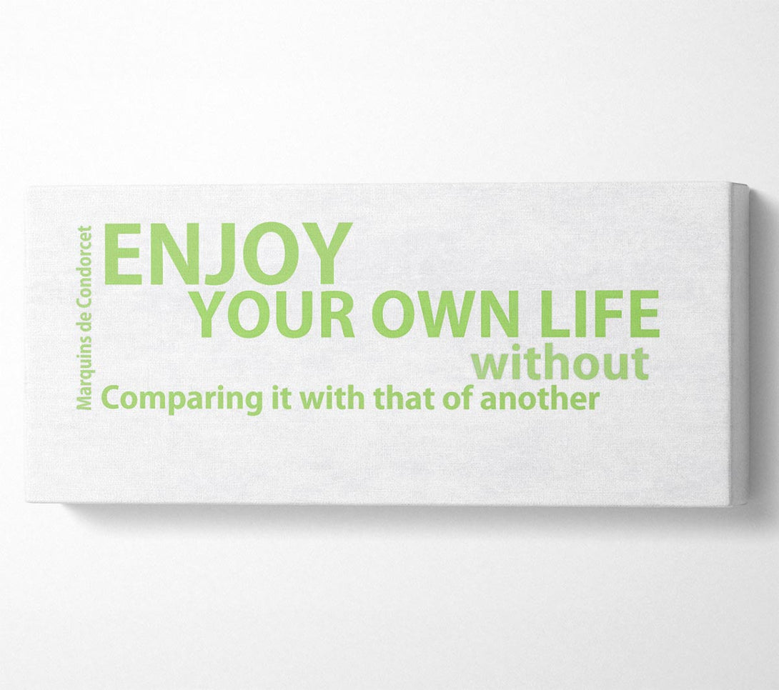 Picture of Famous Quote Enjoy Your Own Life Lime Green Panoramic Canvas Wall Art