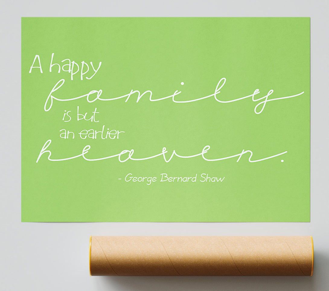 Our Famous Quote George Bernard Shaw A Happy Family Lime Green Poster is printed 260 GSM premium lustre paper that offers vibrant colours and exceptional detail.