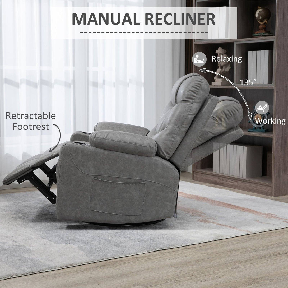 HOMCOM knows the first thing you want to do after a long work day, is relax. This recliner armchair gives you the perfect spot to do that. A large square shape to give you plenty of room to sit, it thickly padded all over - simply sit down and sink in. Features a 135° reclining back, with manual footrest for extra relaxation. Faux leather upholstery for style, complete with two cup holders and two pockets for handiness.