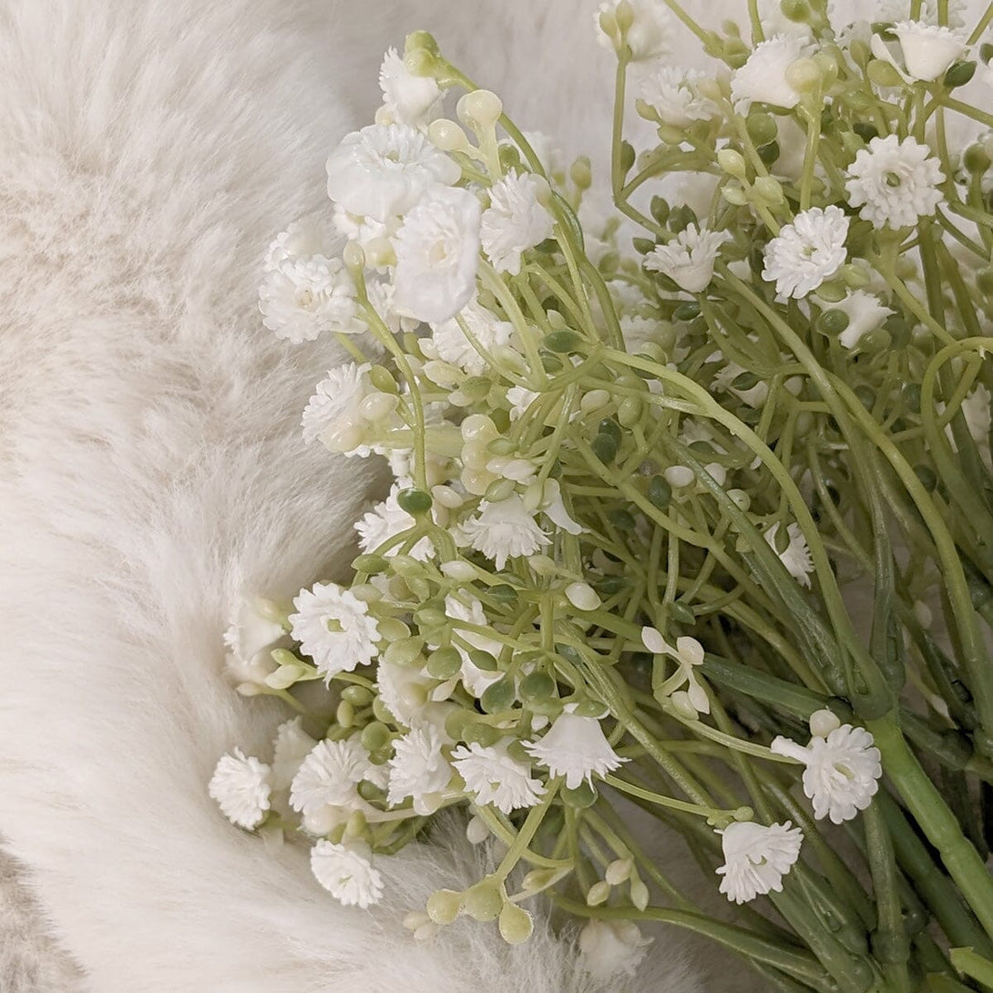 This realistic bunch features an array of tiny white blooms and stems, perfect for creating a soft, romantic ambiance.