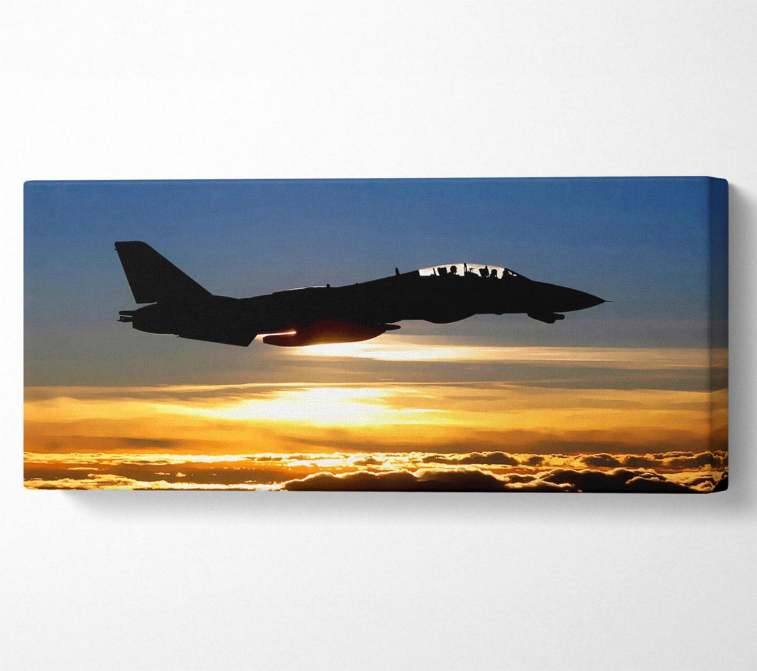 Fighter Pilots At Sunset canvas, printed on coated polyester canvas. Mounted on to a 44mm box frame, ready to hang.