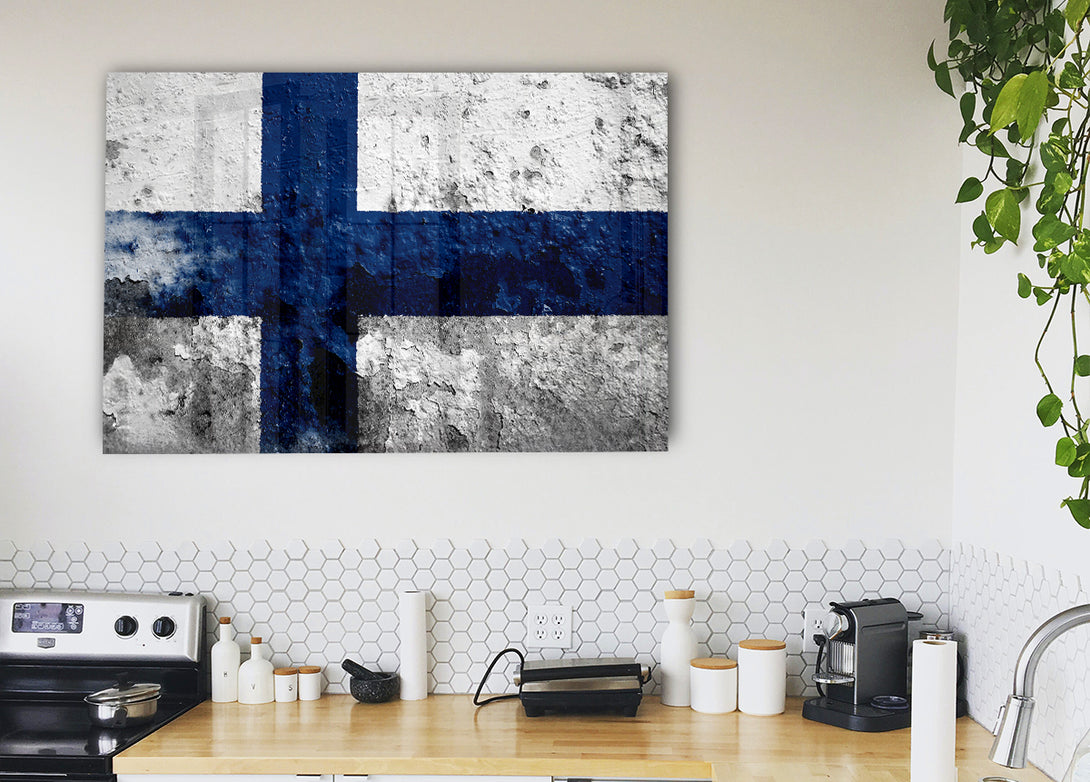 Finland Flag acrylic print, UV printed onto 5mm thick acrylic glass. Comes with everything you need to hang on your wall.