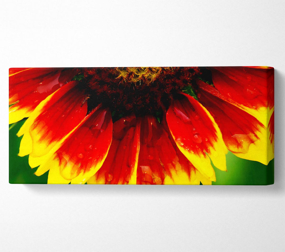 Fire Petal Dewdrop canvas, printed on coated polyester canvas. Mounted on to a 44mm box frame, ready to hang.