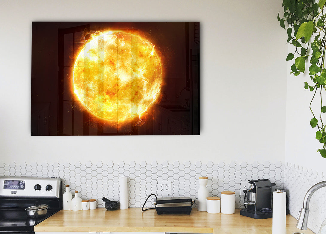 Fire Sun 1 acrylic print, UV printed onto 5mm thick acrylic glass. Comes with everything you need to hang on your wall.