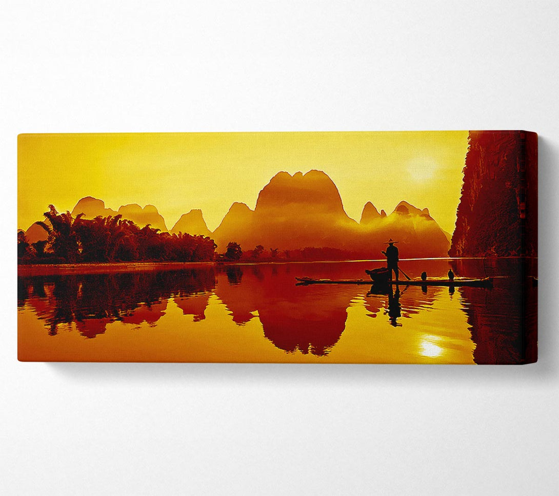 Picture of Fisherman Reflection Caramel Panoramic Canvas Wall Art