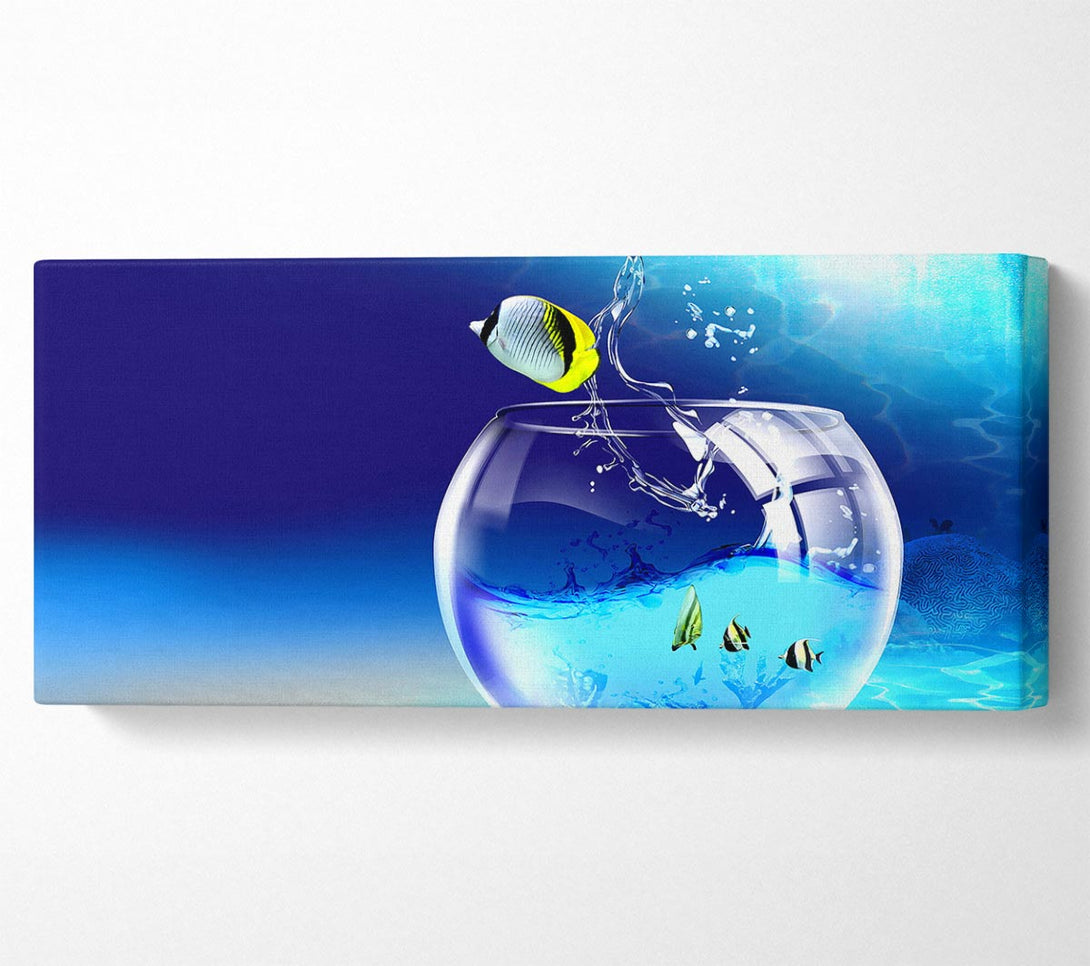 Fishy Life canvas, printed on coated polyester canvas. Mounted on to a 44mm box frame, ready to hang.