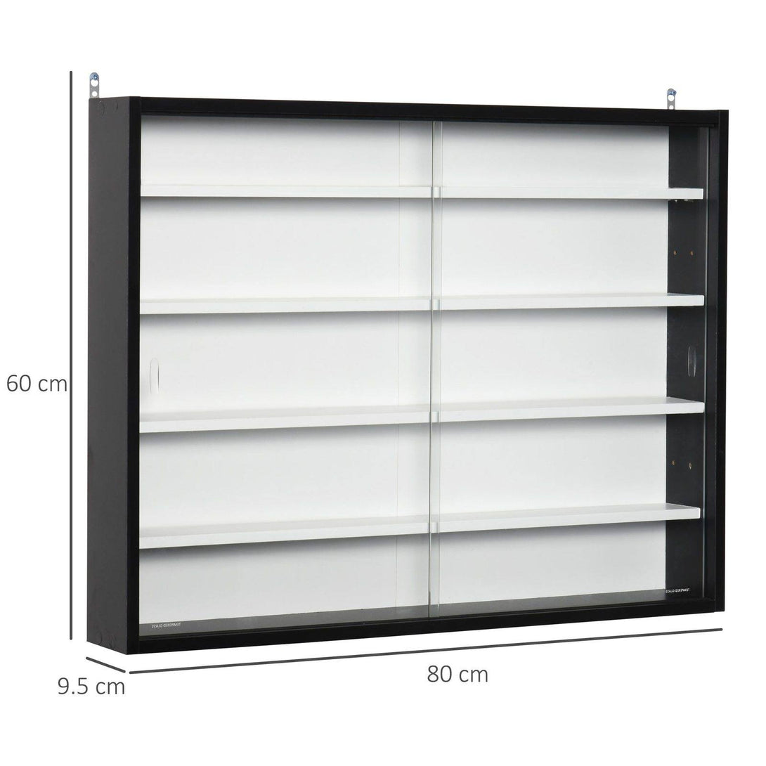 It's time to get your ornaments displayed and organised - look no further than this wall cabinet from HOMCOM. Its five-tier design means there is plenty of room for keeping everything you want safely on show, with each shelf being able to adjust to suit what you need to hold. The structure is crafted from particle board, so it is tough and durable, and the front is fitted with two moving glass doors, keeping everything protected and easy to access when wanted. Easy to put in place, this classic home furnishing will keep all your favourite pieces beautifully displayed.