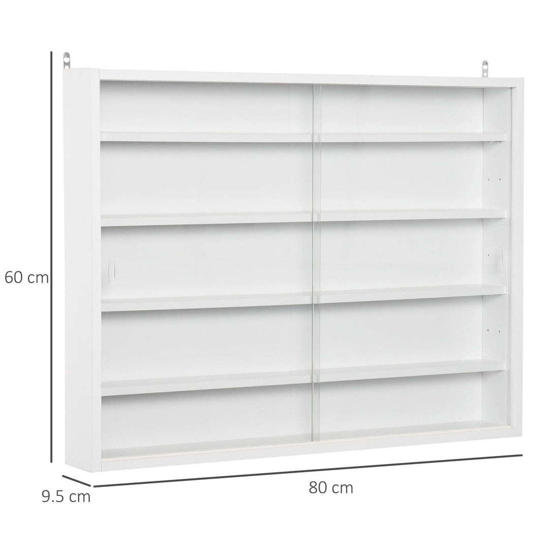 It's time to get your ornaments displayed and organised - look no further than this wall cabinet from HOMCOM. Its five-tier design means there is plenty of room for keeping everything you want safely on show, with each shelf being able to adjust to suit what you need to hold. The structure is crafted from particle board, so it is tough and durable, and the front is fitted with two moving glass doors, keeping everything protected and easy to access when wanted. Easy to put in place, this classic home furnishing will keep all your favourite pieces beautifully displayed.