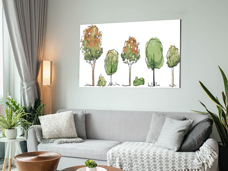 Five Trees In A Row Printed on brushed aluminium dibond. A modern way to display art and easy to maintain.