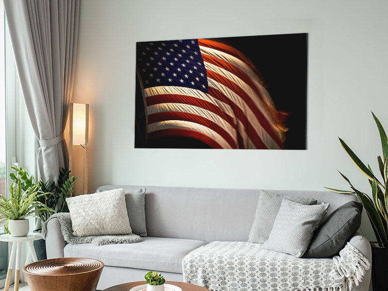 Flag Of America Printed on brushed aluminium dibond. A modern way to display art and easy to maintain.