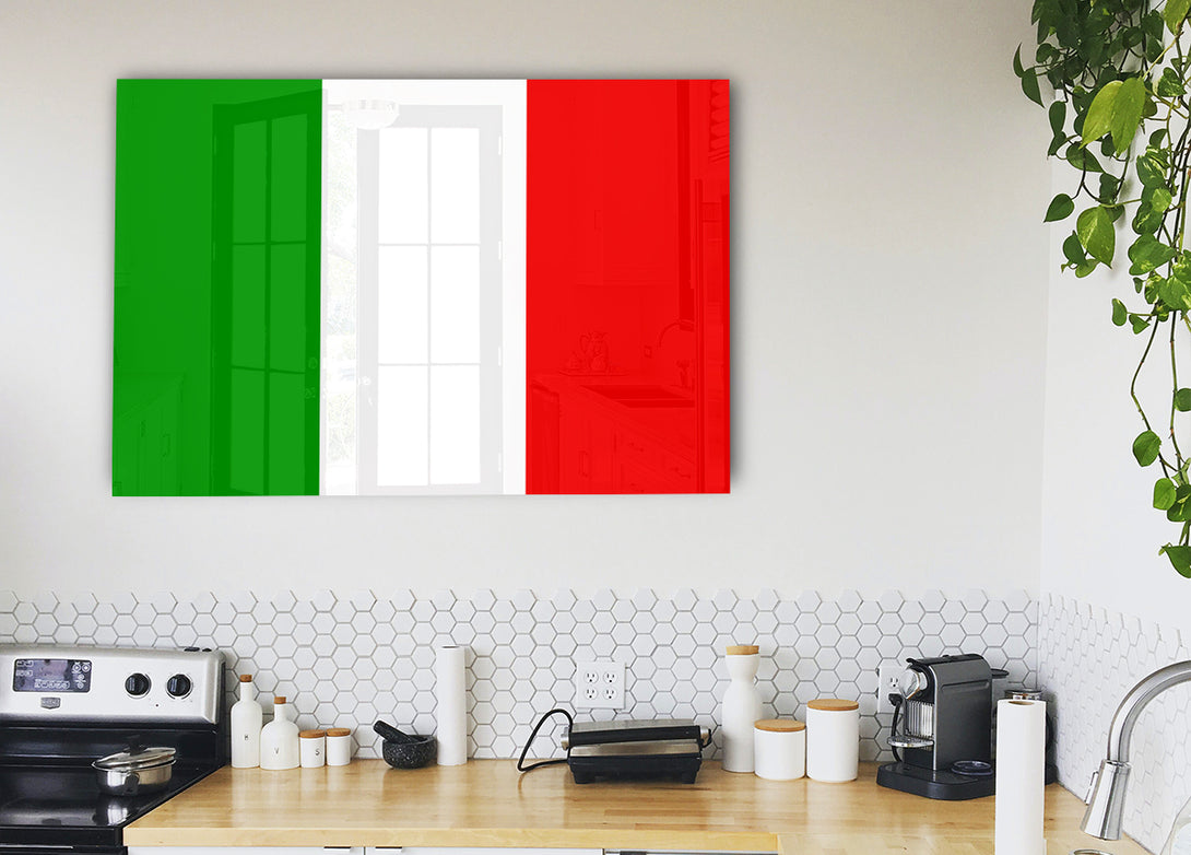 Flag Of Italy acrylic print, UV printed onto 5mm thick acrylic glass. Comes with everything you need to hang on your wall.