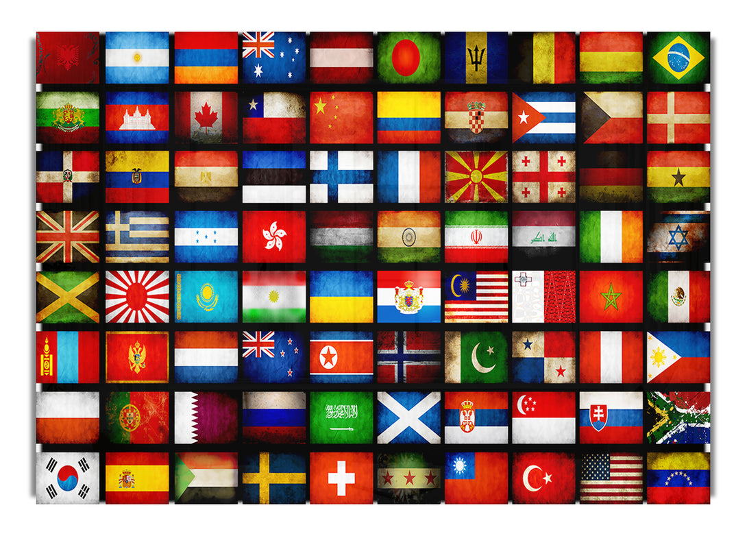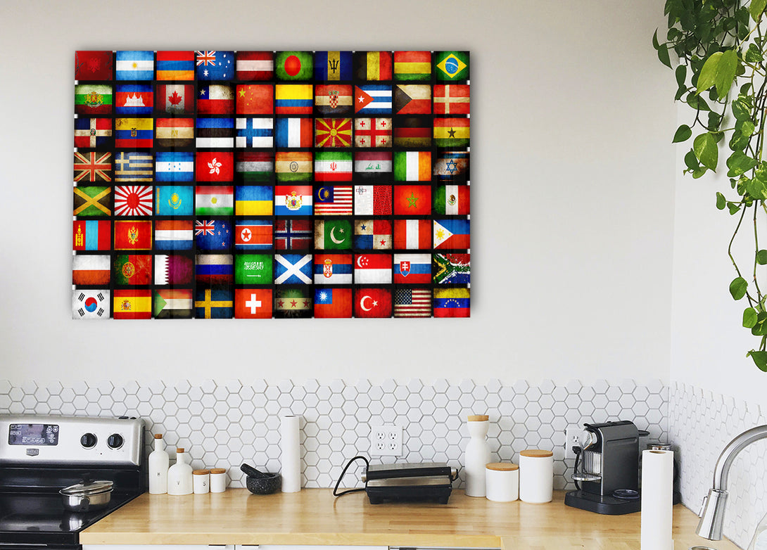 Flags Of The World acrylic print, UV printed onto 5mm thick acrylic glass. Comes with everything you need to hang on your wall.