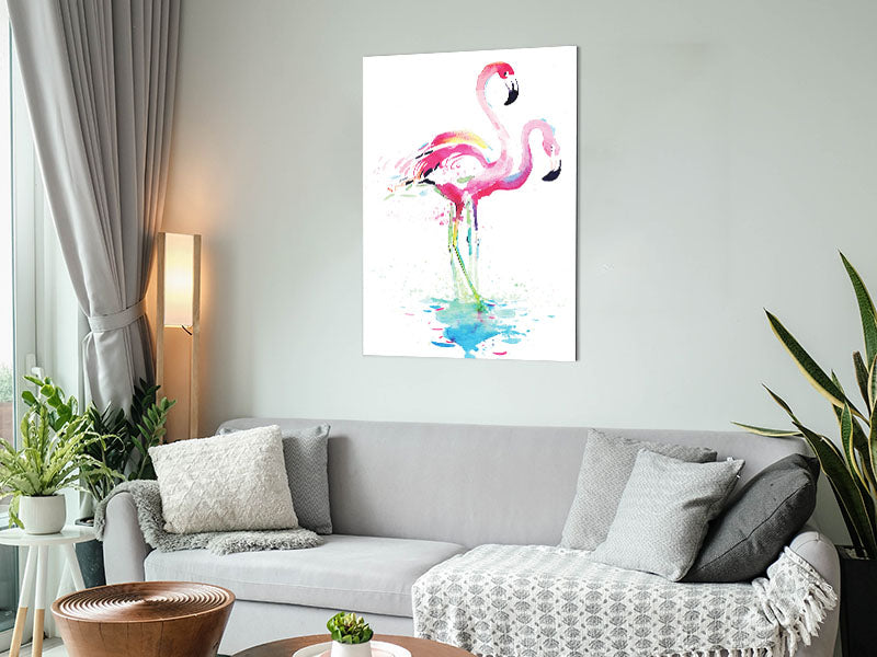 Flamingo Watercolour Printed on brushed aluminium dibond. A modern way to display art and easy to maintain.