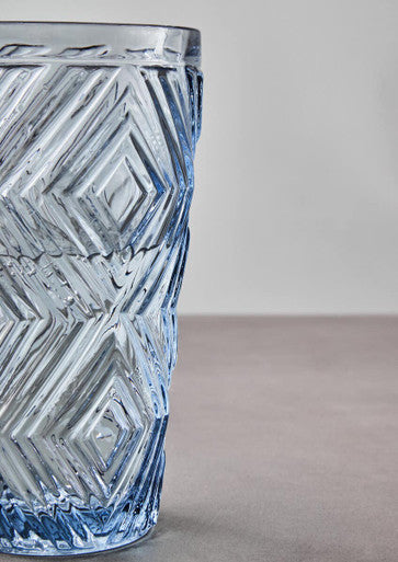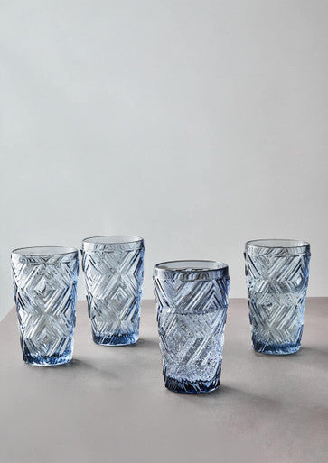 These highball glasses have a captivating blue hue that brings a touch of sophistication to any dining table. The diamond shaped embossed patterns not only add to the look but also improve the grip.