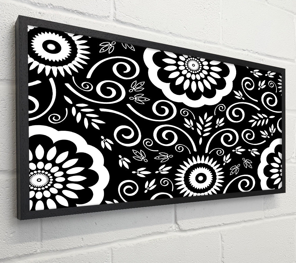 Flock Of Flowers White On Black