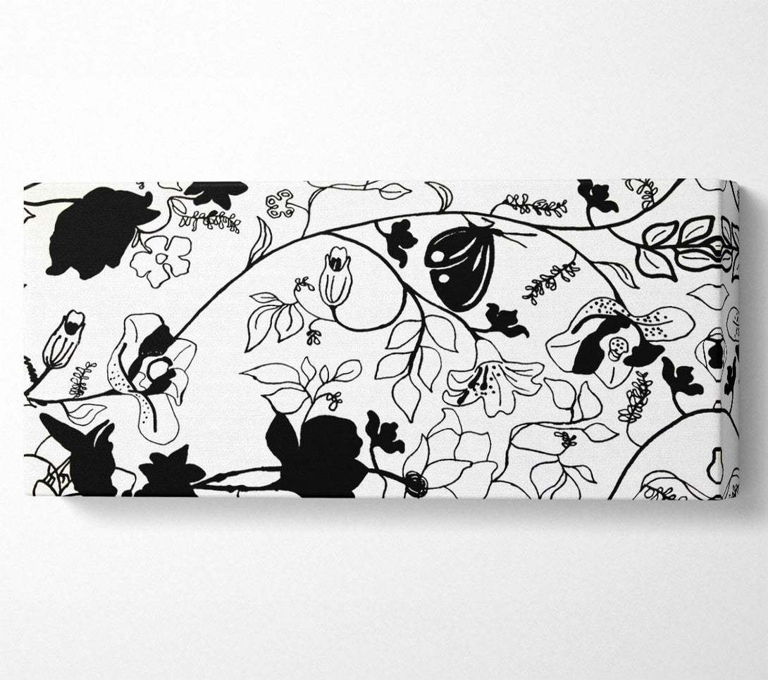 Floral Desire Black On White canvas, printed on coated polyester canvas. Mounted on to a 44mm box frame, ready to hang.