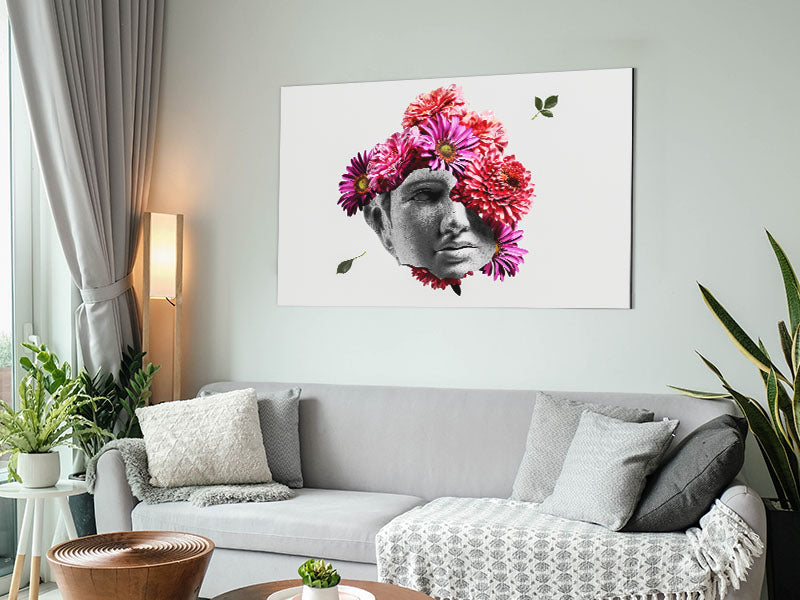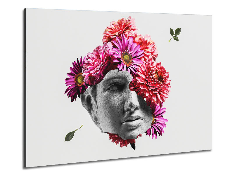Floral Greek Face Printed on brushed aluminium dibond. A modern way to display art and easy to maintain.