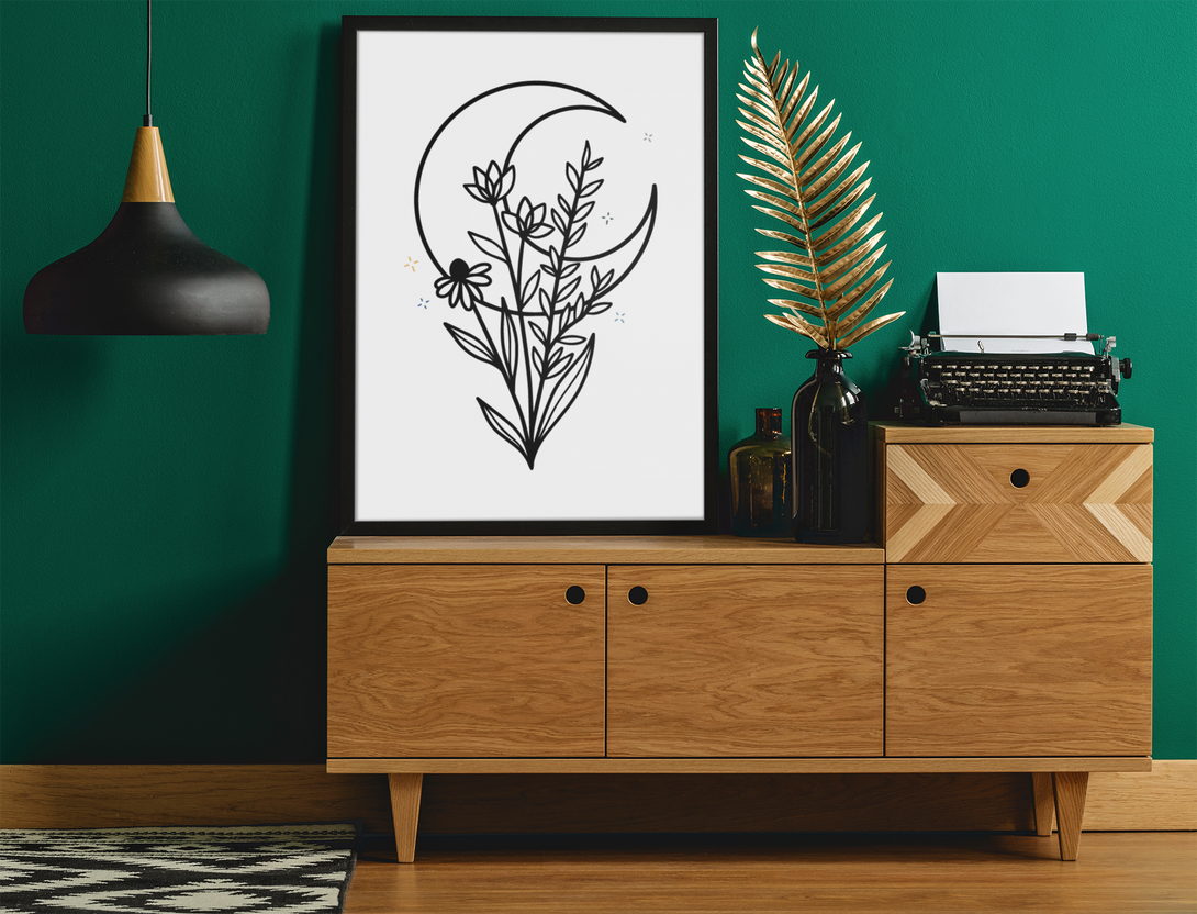 Floral Moon No.3 Boho Hippie Simple Home Wall Decor Print