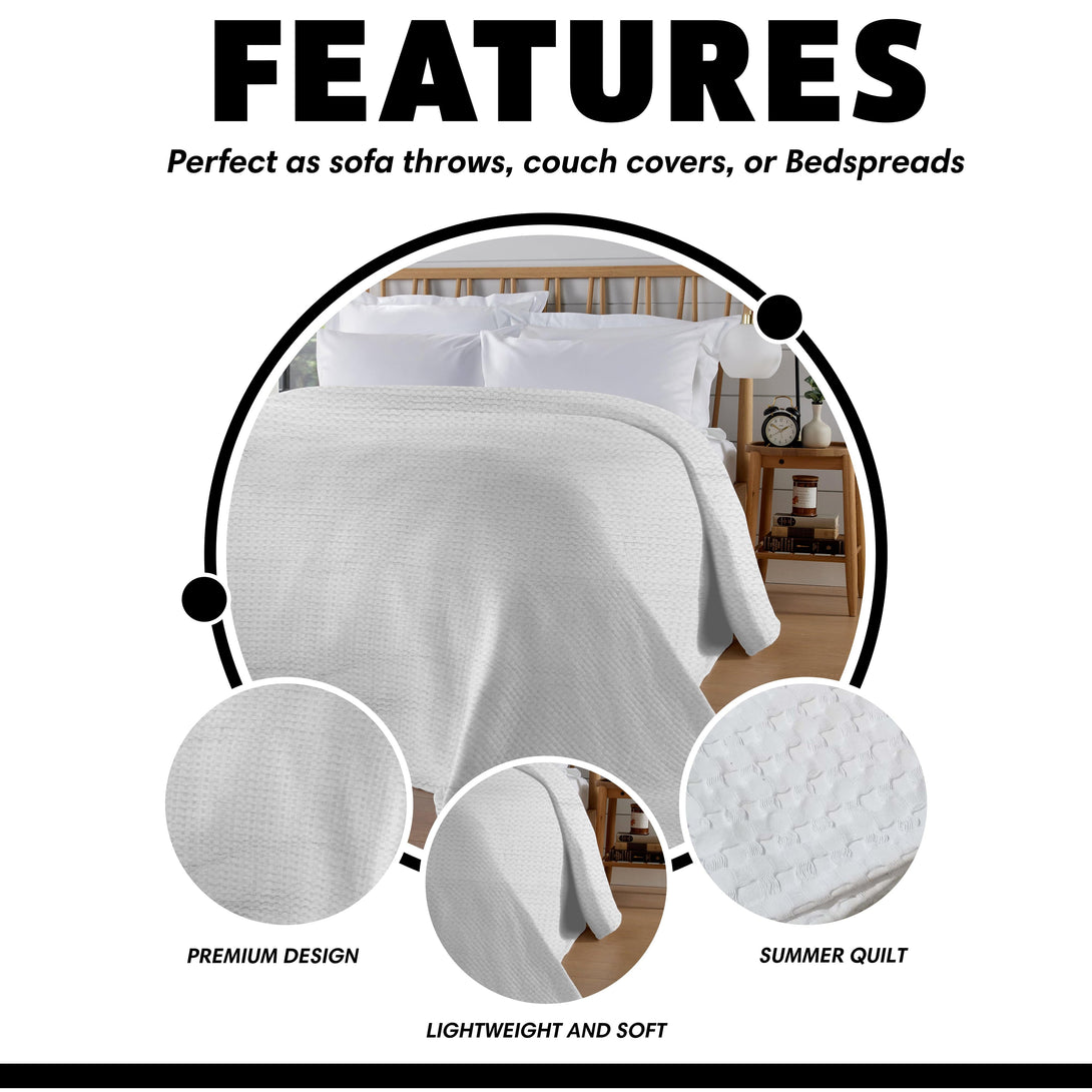 Description: Crafted from 100% premium cotton, this checked bedspread throw offers a soft, breathable texture that provides comfort and warmth. The classic checked pattern adds timeless elegance, easily complementing a variety of home decors.