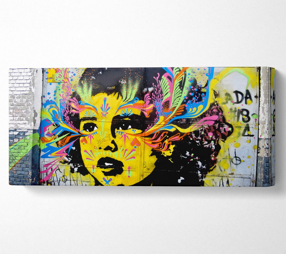Flower Child canvas, printed on coated polyester canvas. Mounted on to a 44mm box frame, ready to hang.