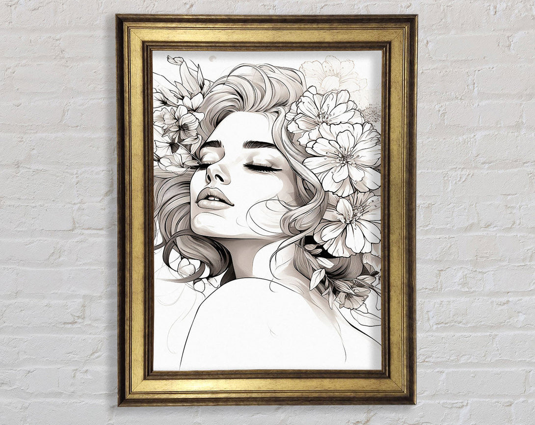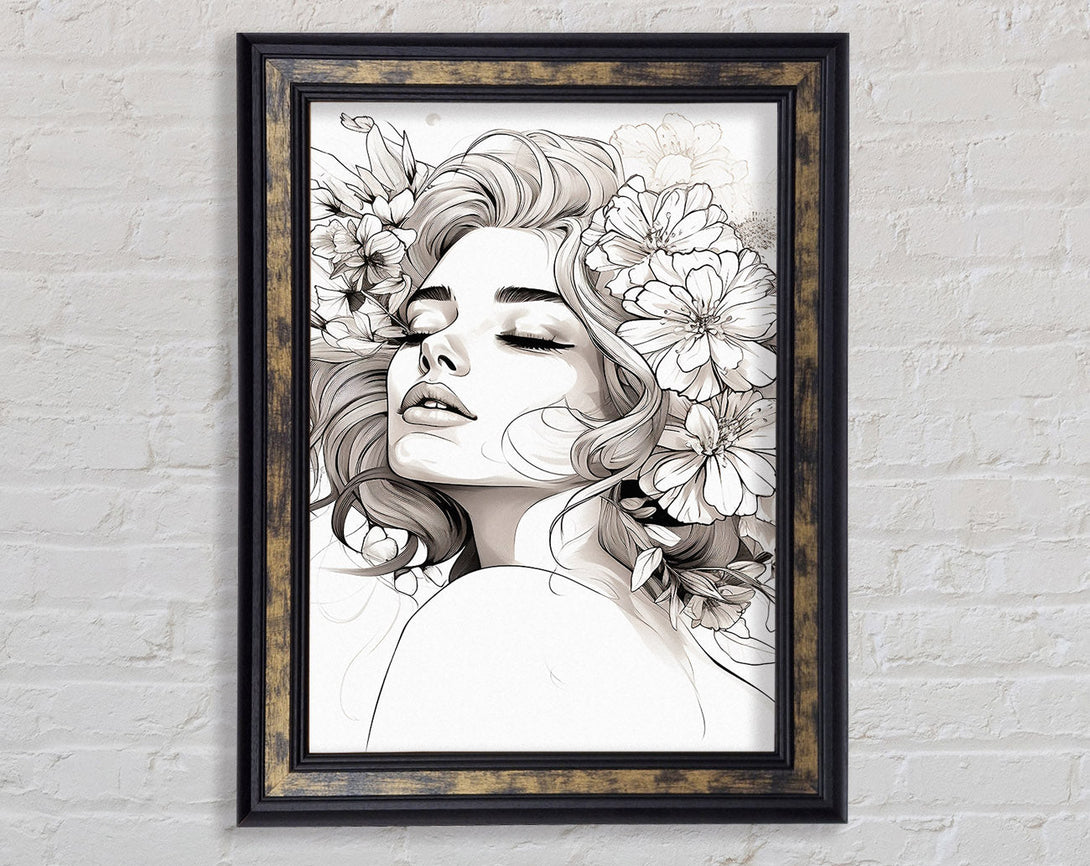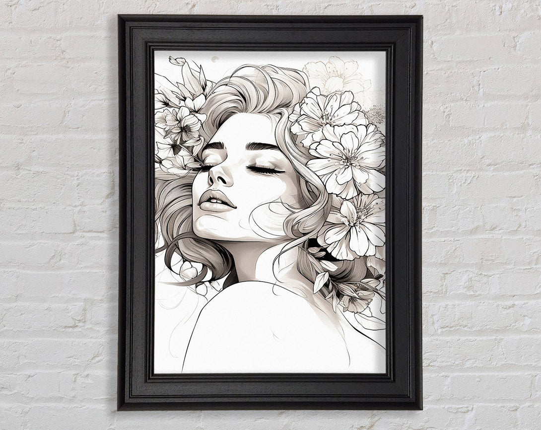 Flower Ink Woman Framed Print