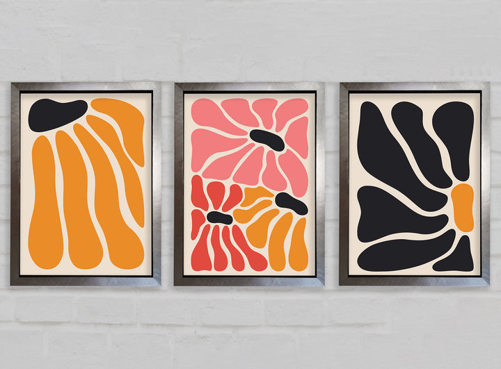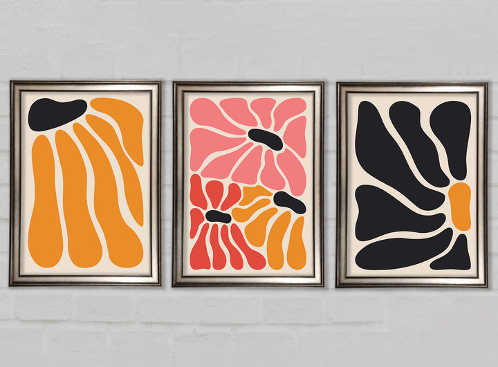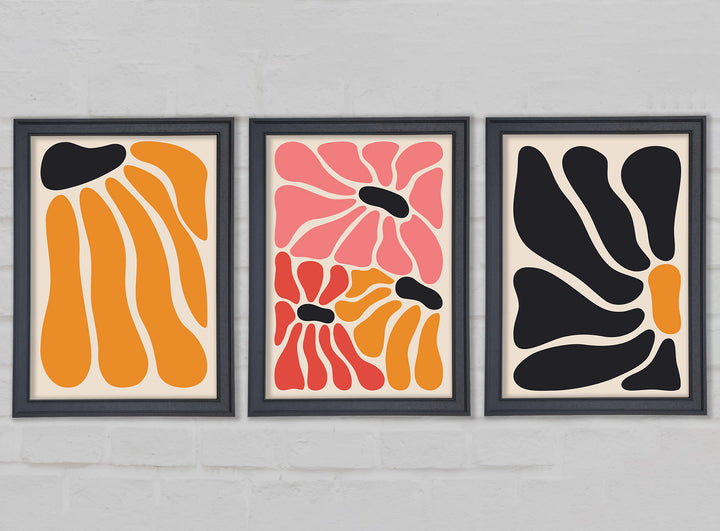 Flower Market set of 3 framed print wall art, available in mutiple frame colours. Ready to hang from the box and handmade in the United Kingdom.