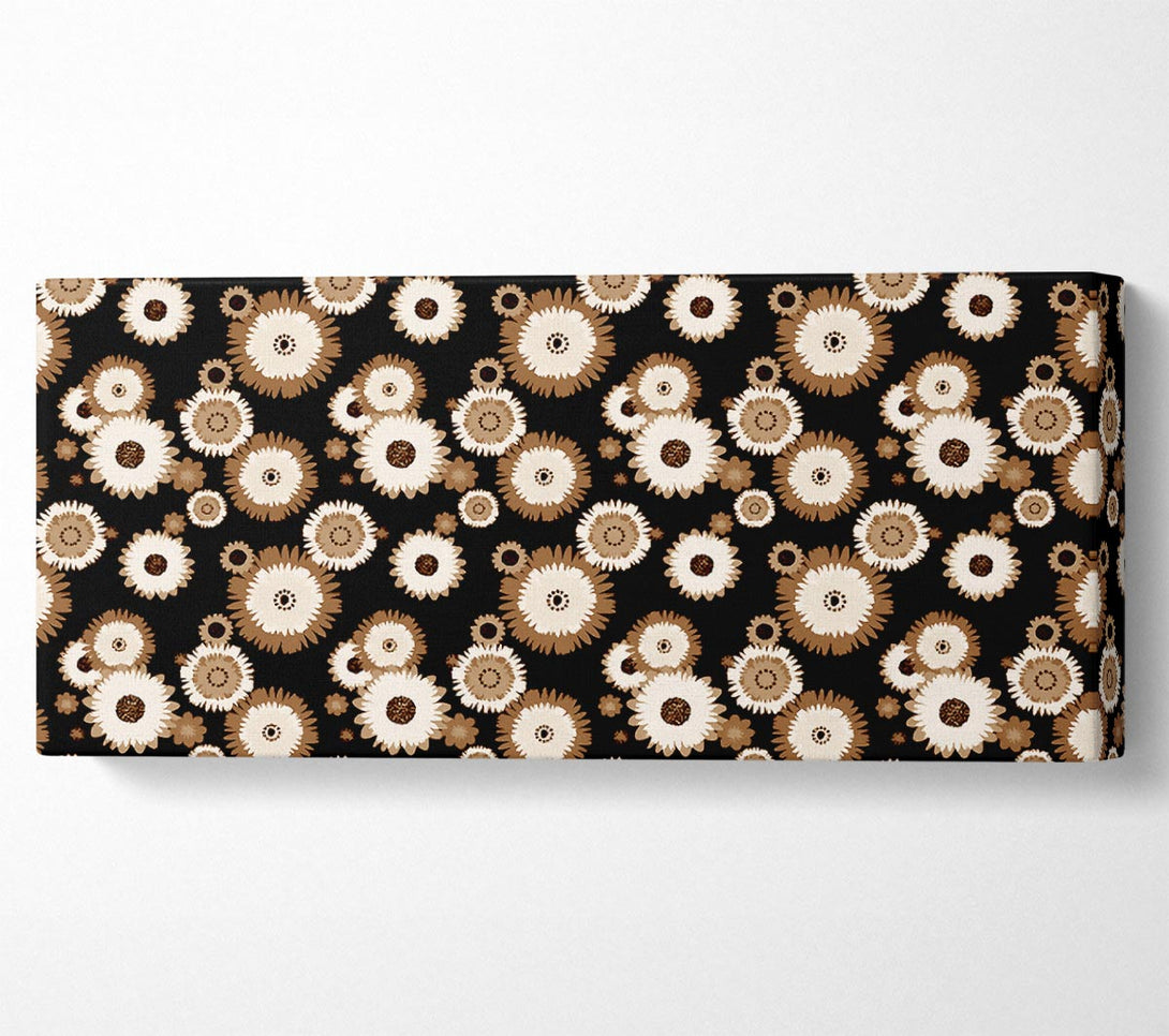 Flower On Flower Brown canvas, printed on coated polyester canvas. Mounted on to a 44mm box frame, ready to hang.