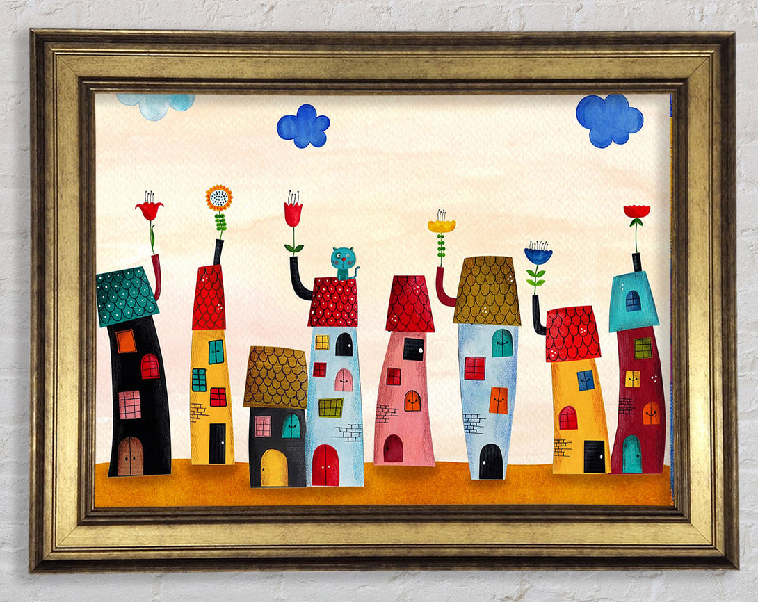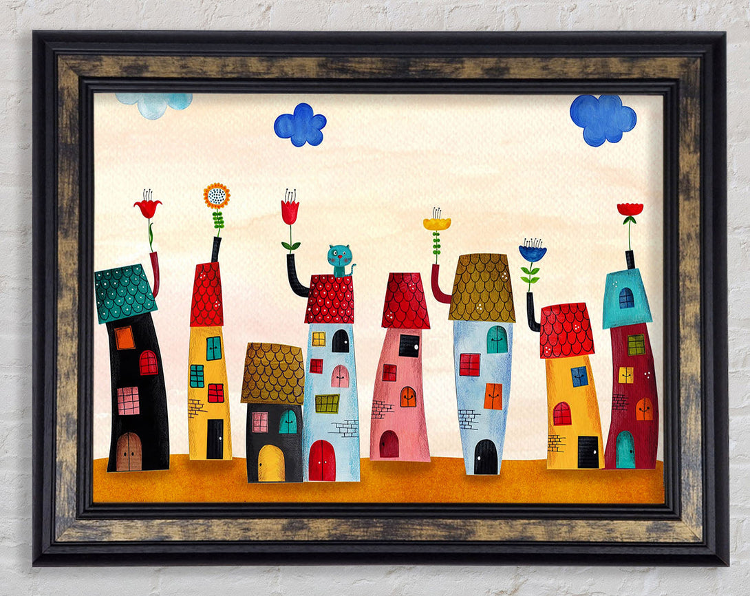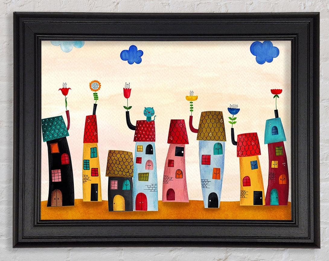 Flower Pot Houses Framed Print