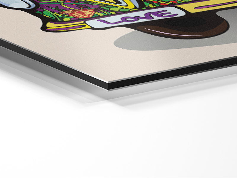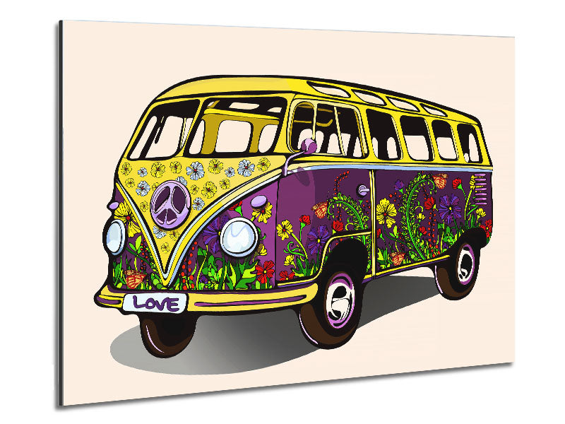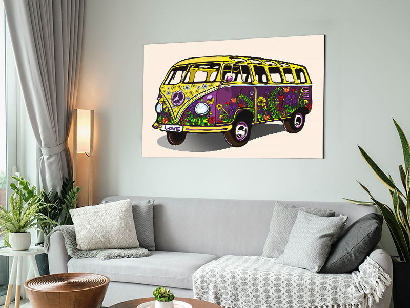 Flower Power VW Camper Van Printed on brushed aluminium dibond. A modern way to display art and easy to maintain.