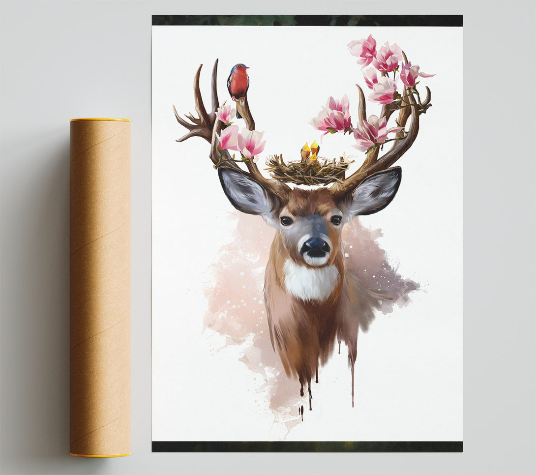 Flower Stag Birds Poster