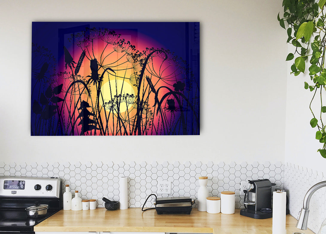 Flower Sun Glow acrylic print, UV printed onto 5mm thick acrylic glass. Comes with everything you need to hang on your wall.