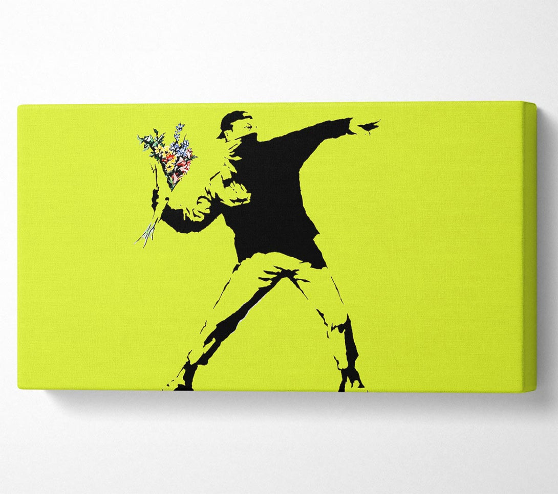 Flower Thrower Lime Green canvas, printed on coated polyester canvas. Mounted on to a 44mm box frame, ready to hang.