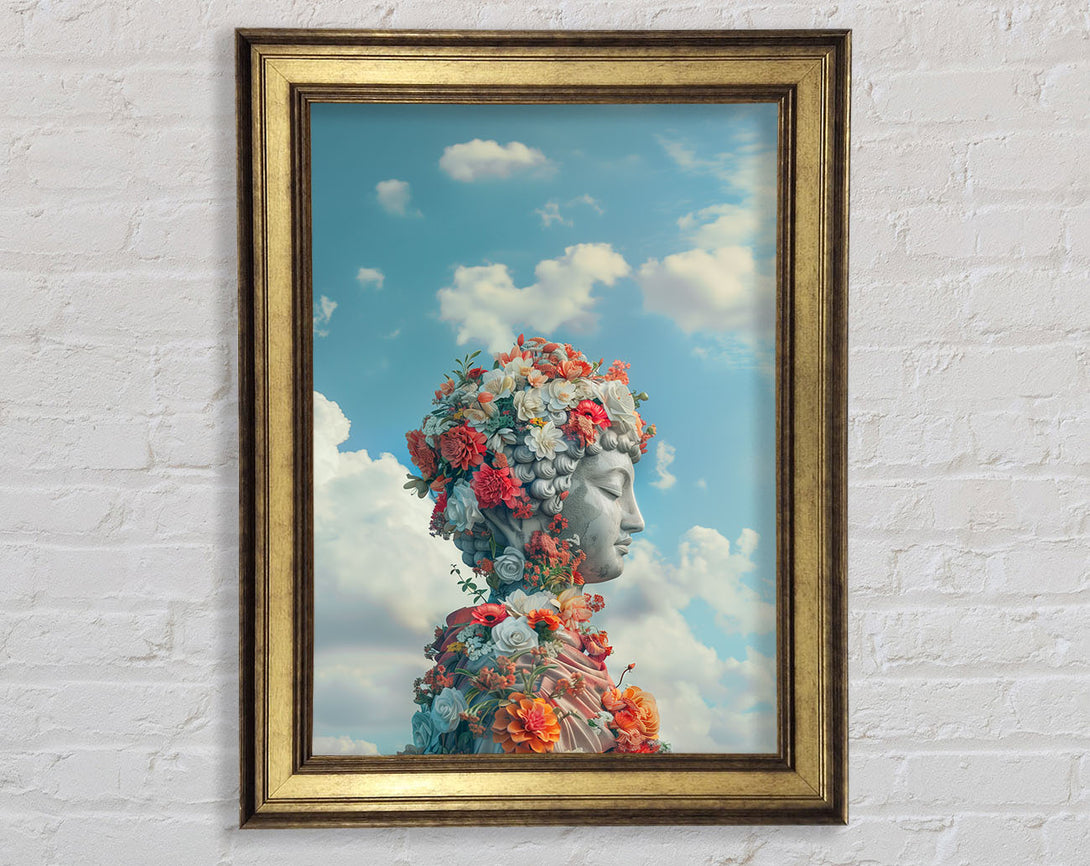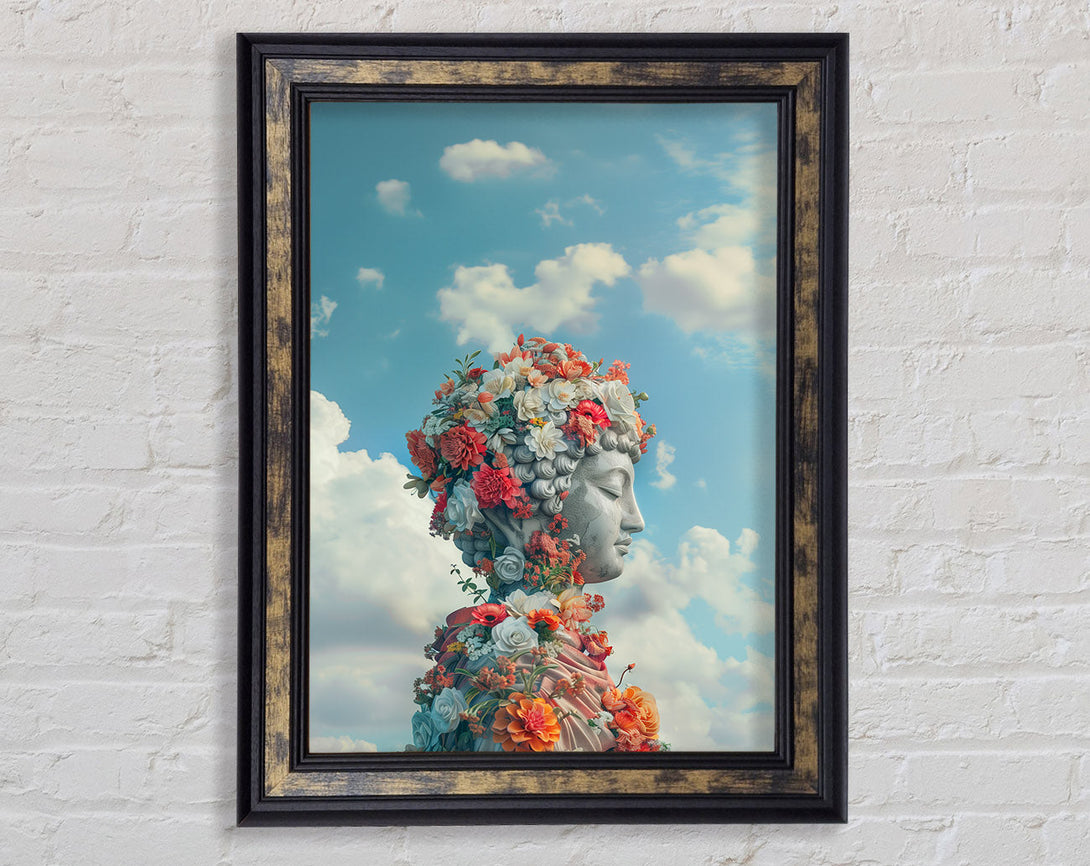 Flowers On Buddha Framed Print