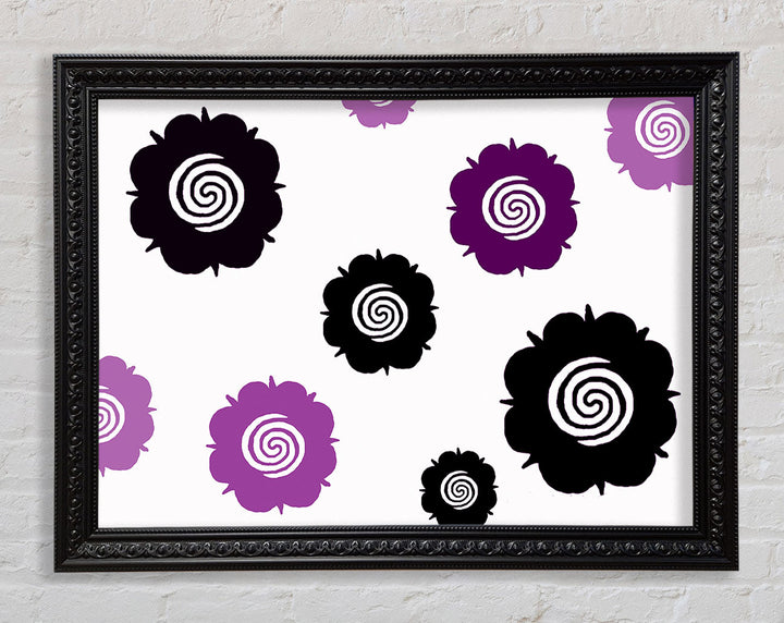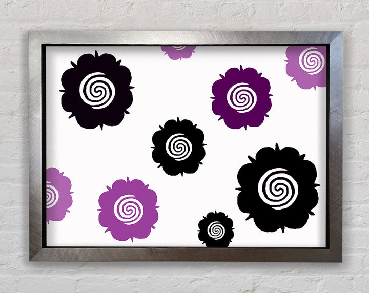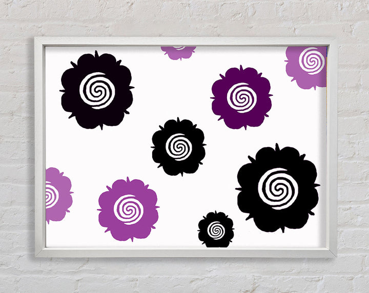 Flowers Purple On White Framed Print