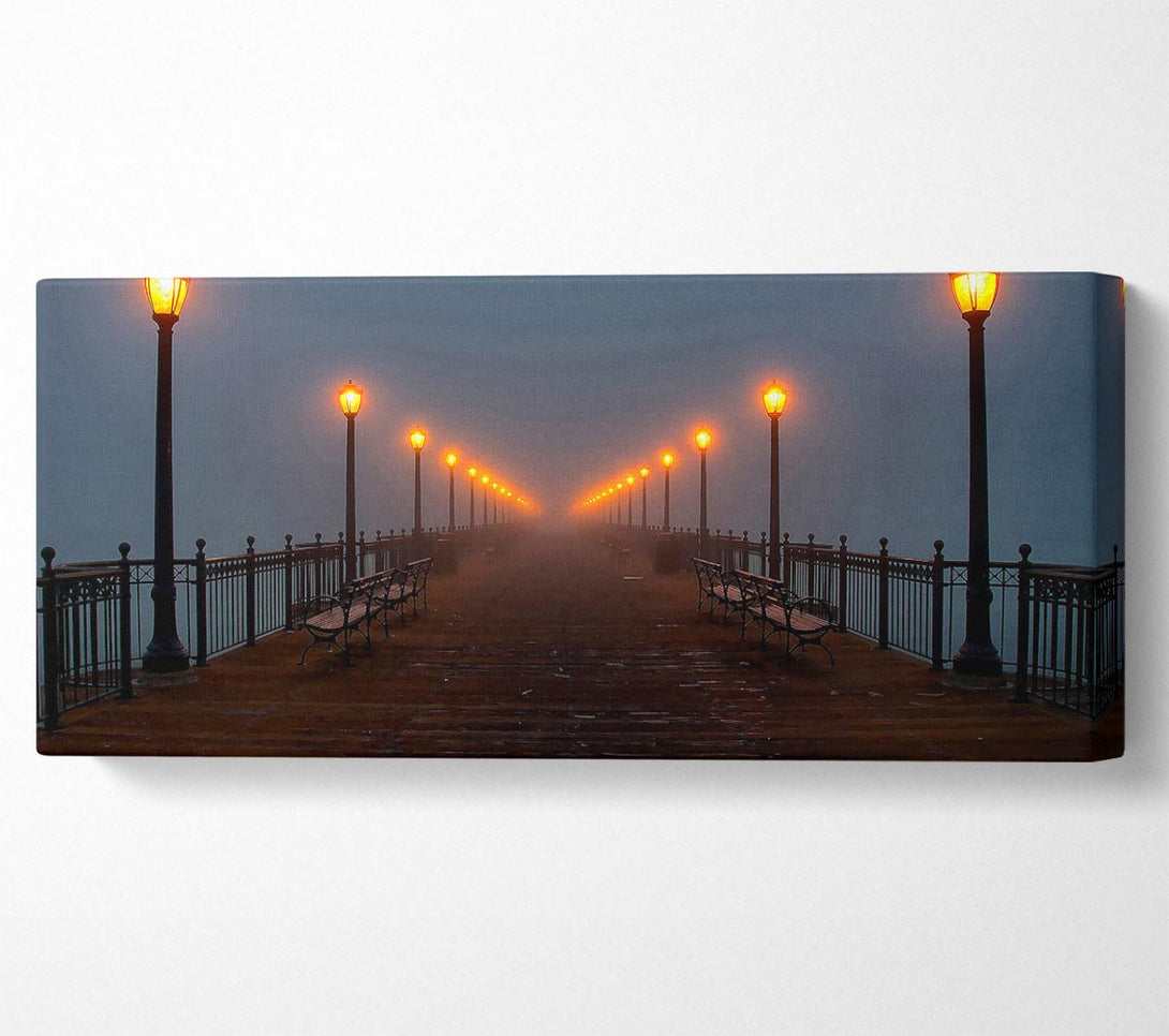 Picture of Foggy Pier Night Walk Panoramic Canvas Wall Art