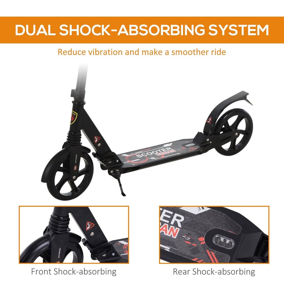 Ride around with this kick scooter from HOMCOM. The kick scooter adult frame is sturdy yet lightweight. It is crafted into an innovative folding design, allowing the commuter scooters to be opened and closed quickly. Adjustable from 90cm to 105cm, the 2 wheel scooter's handlebar is able to comfortably suit a wealth of heights. It is finished with a rear-wheel fender braking system, ensuring not only is this scooter safe to ride on, but it is also both safe and fun.