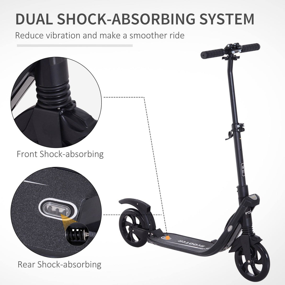 Ride around with this kick scooter adult from HOMCOM. The commuter scooter adult suspension frame is sturdy yet lightweight. It is crafted into an innovative folding design, allowing the commuter scooters to be opened and closed quickly. Adjustable from 95cm to 105cm, the 2 wheel scooter's handlebar is able to comfortably suit a wealth of heights. It is finished with a rear-wheel fender braking system, ensuring not only is this scooter safe to ride on, but it is also both safe and fun.