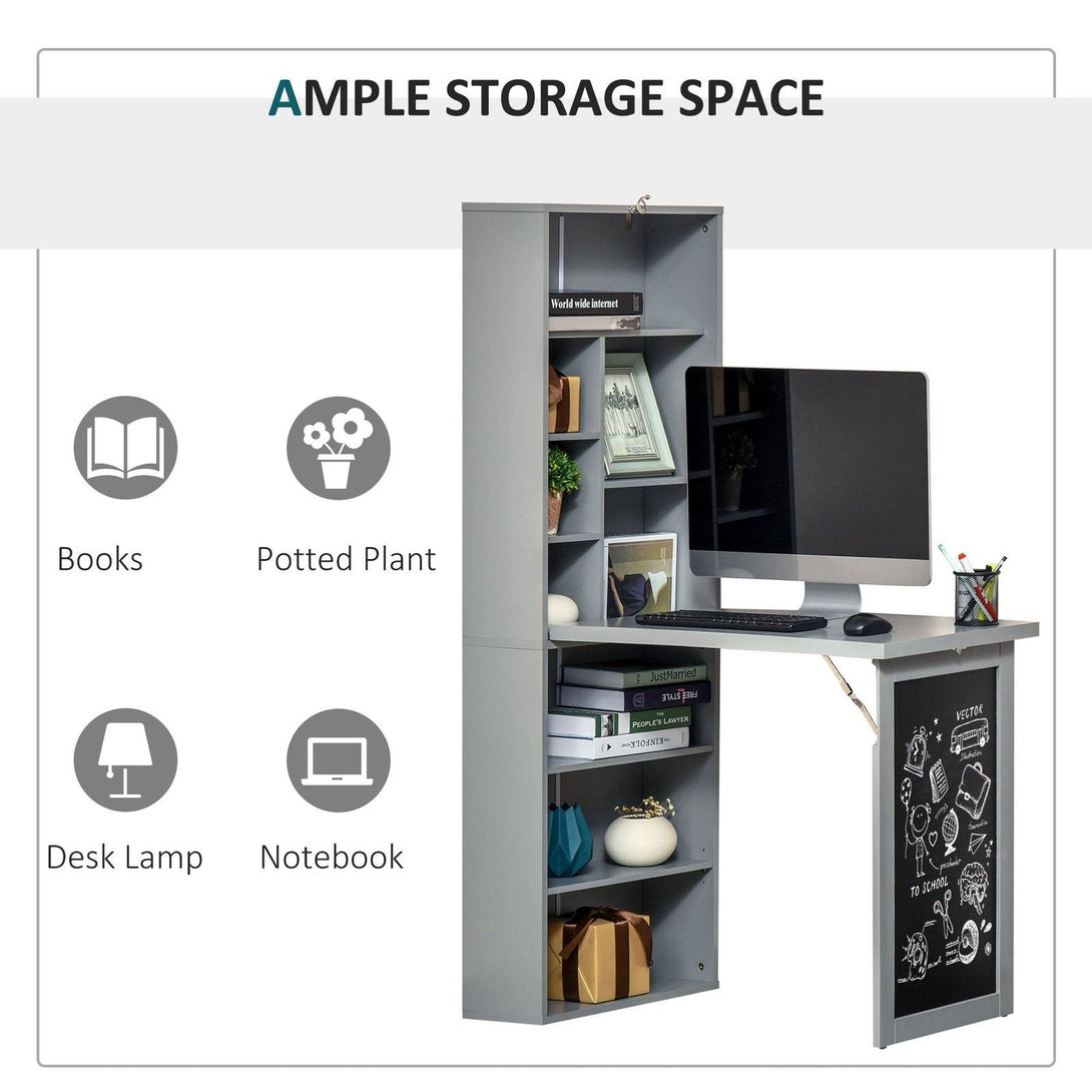 Folding Convertible Desk with Blackboard Multi-function Computer Office Workstation Side Shelf for Home Office