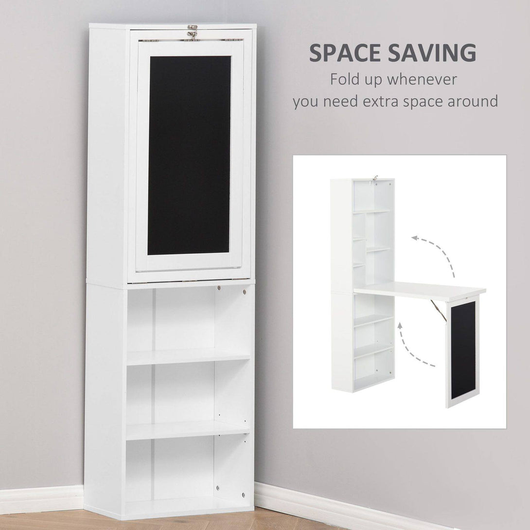 Folding Convertible Desk with Blackboard Multi-function Computer Office Workstation Side Shelf for Home Office - White