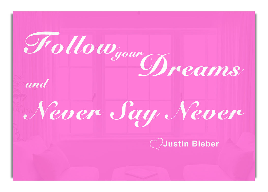 Follow Your Dreams Justin Bieber Vivid Pink acrylic print, UV printed onto 5mm thick acrylic glass. Comes with everything you need to hang on your wall.