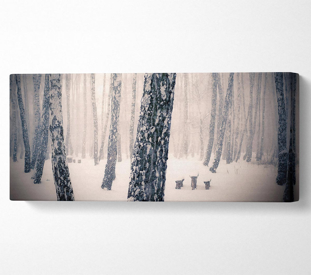 Forest Snowing canvas, printed on coated polyester canvas. Mounted on to a 44mm box frame, ready to hang.
