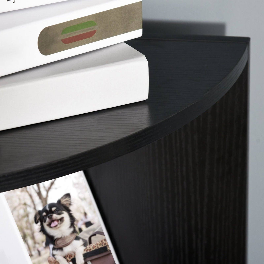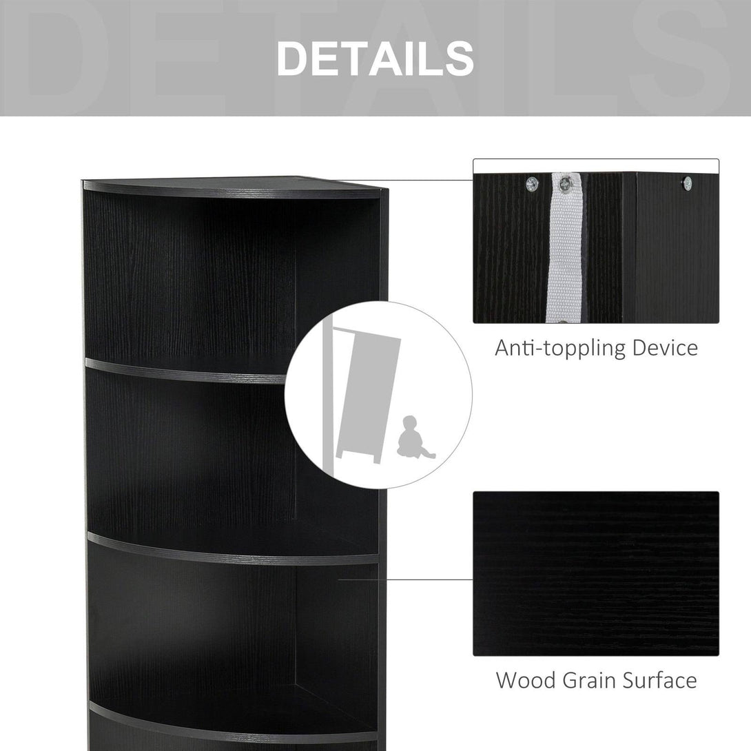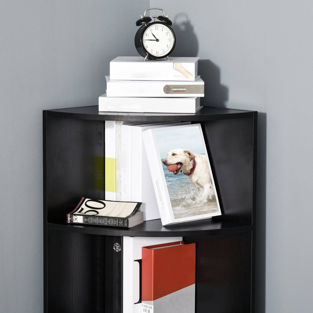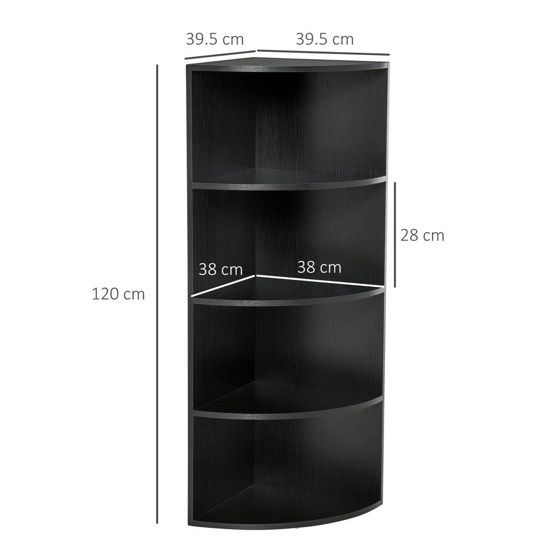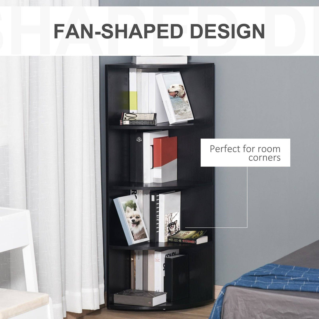 This corner shelf is ideal for those looking for extra storage without compromising on space. Crafted from thick particle board with a melamine surface so its easy to clean and maintain, it features four spacious shelves to store and display books, photos, plants and more. In a fan-shaped design that fits neatly into corners, it is finished to blend in beautifully with your style décor. A perfect addition to living rooms, bedrooms and hallways.