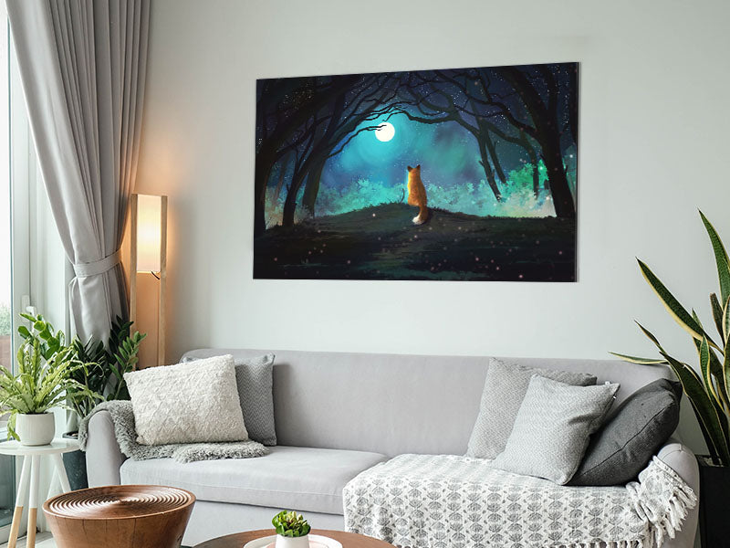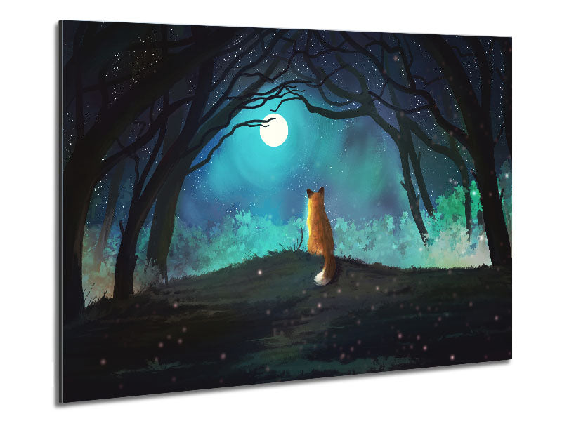 Fox Staring At The Moon Printed on brushed aluminium dibond. A modern way to display art and easy to maintain.