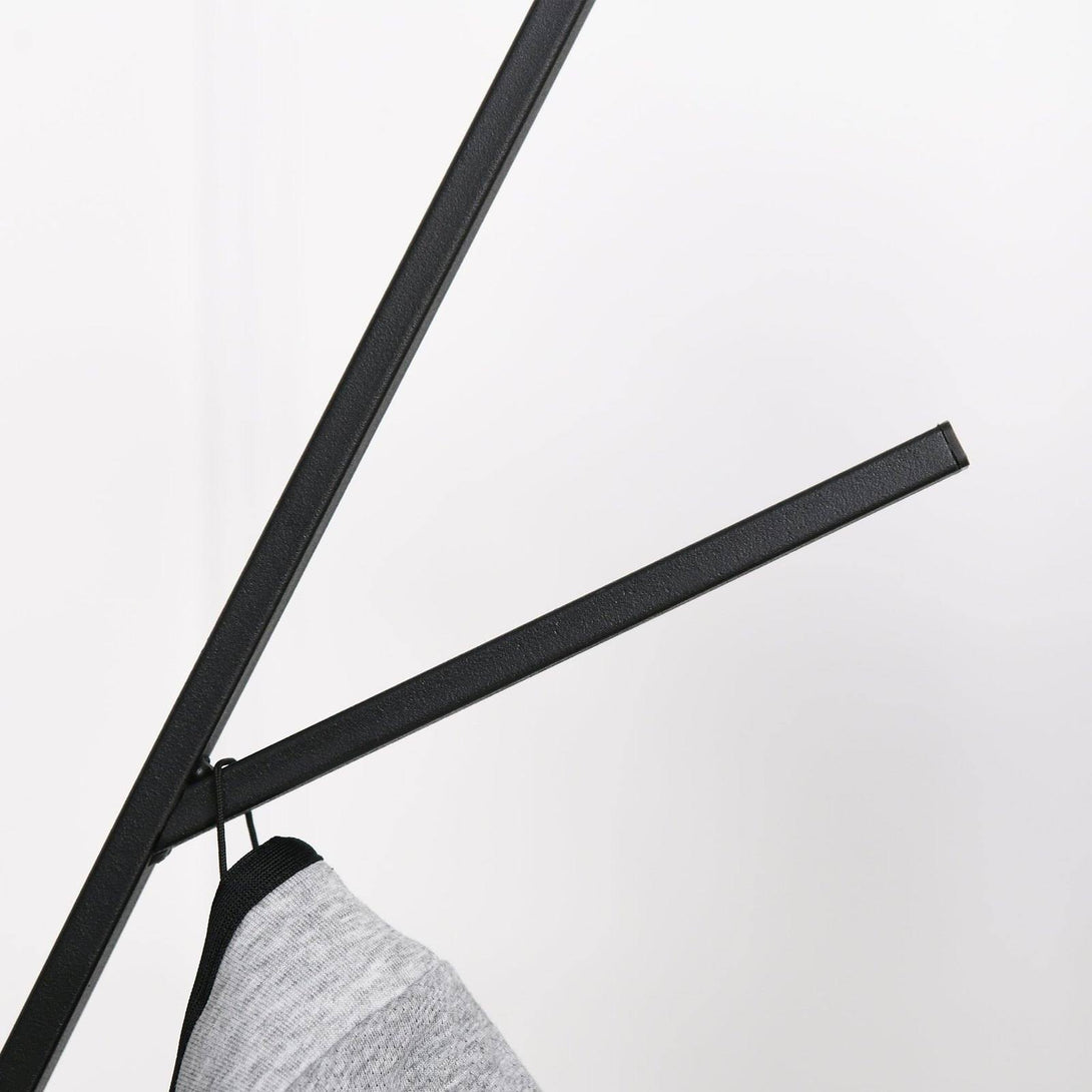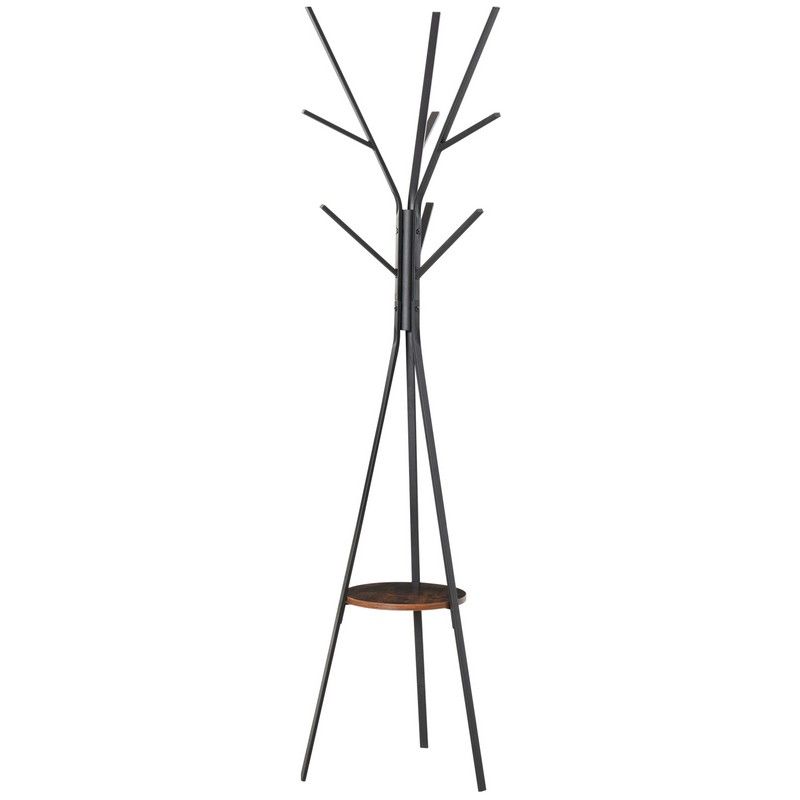 This functional coat rack from HOMCOM is designed to handle your entire family's coats and other heavy garments including clothing accessories such as hats, scarves, and beanies. It combines a freestanding coat rack and a display stand in one easy to use unit. A compact and modern design helps you save in your hallway or entryway. What's more, you can place it in any corner, wherever you want such as the bedroom, garage, or office. Its made from sturdy and strong steel metal with 9 hooks and a bottom shelf for all your belongings.